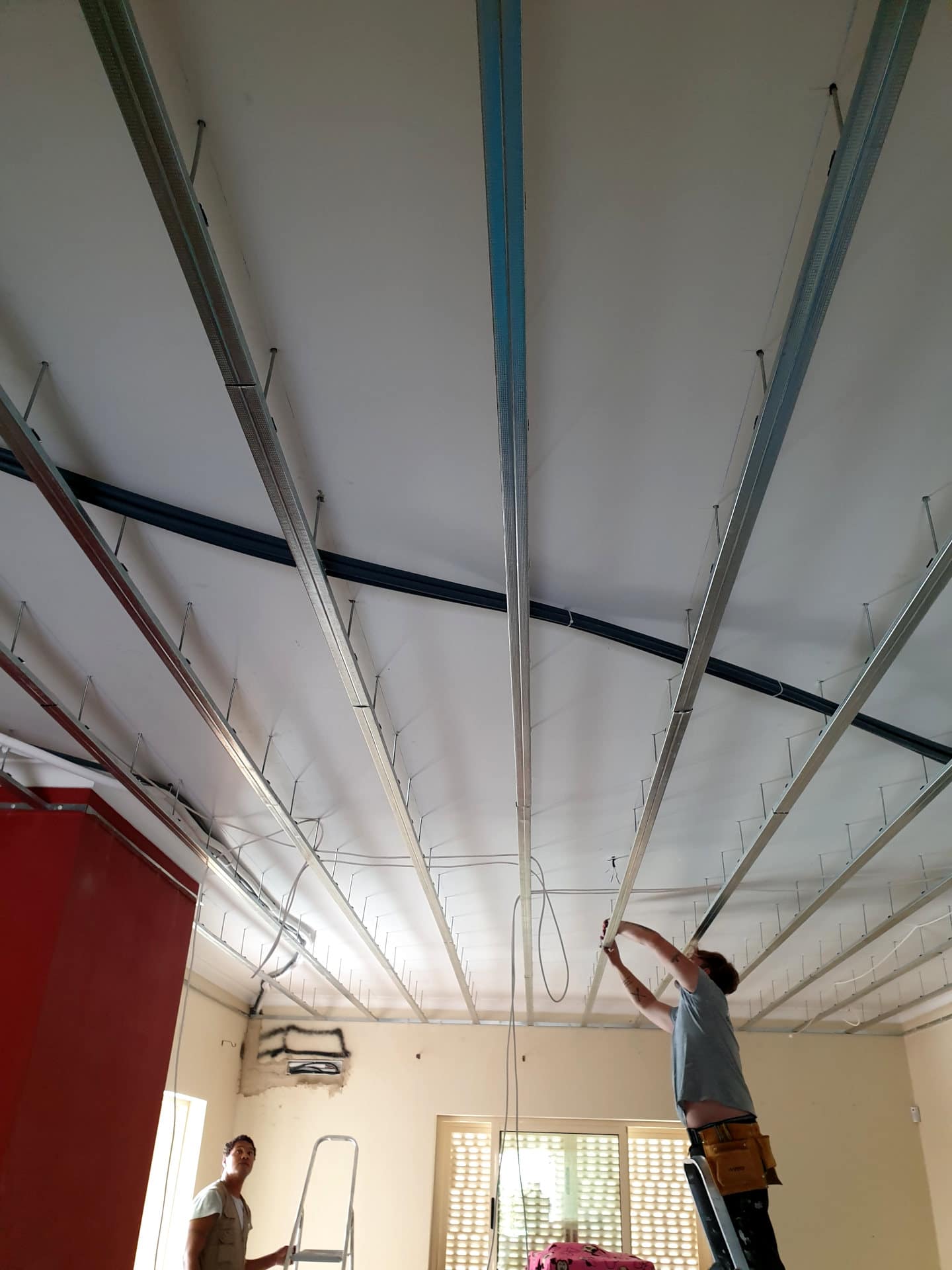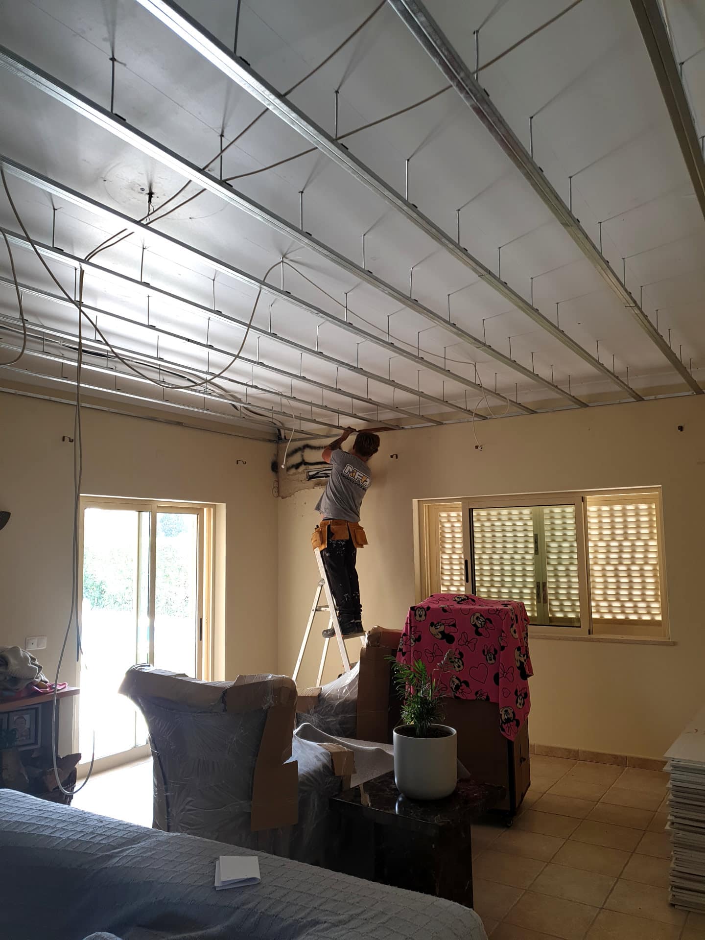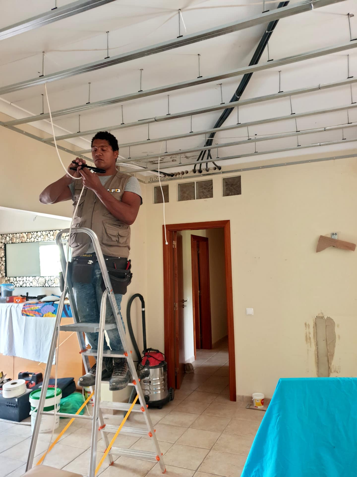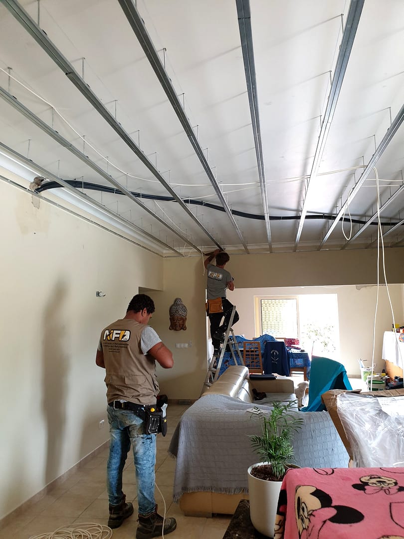 Reconversão de sistema de iluminação em toda a casa com instalação de sistemas de luz LED embutidos em teto falso.
