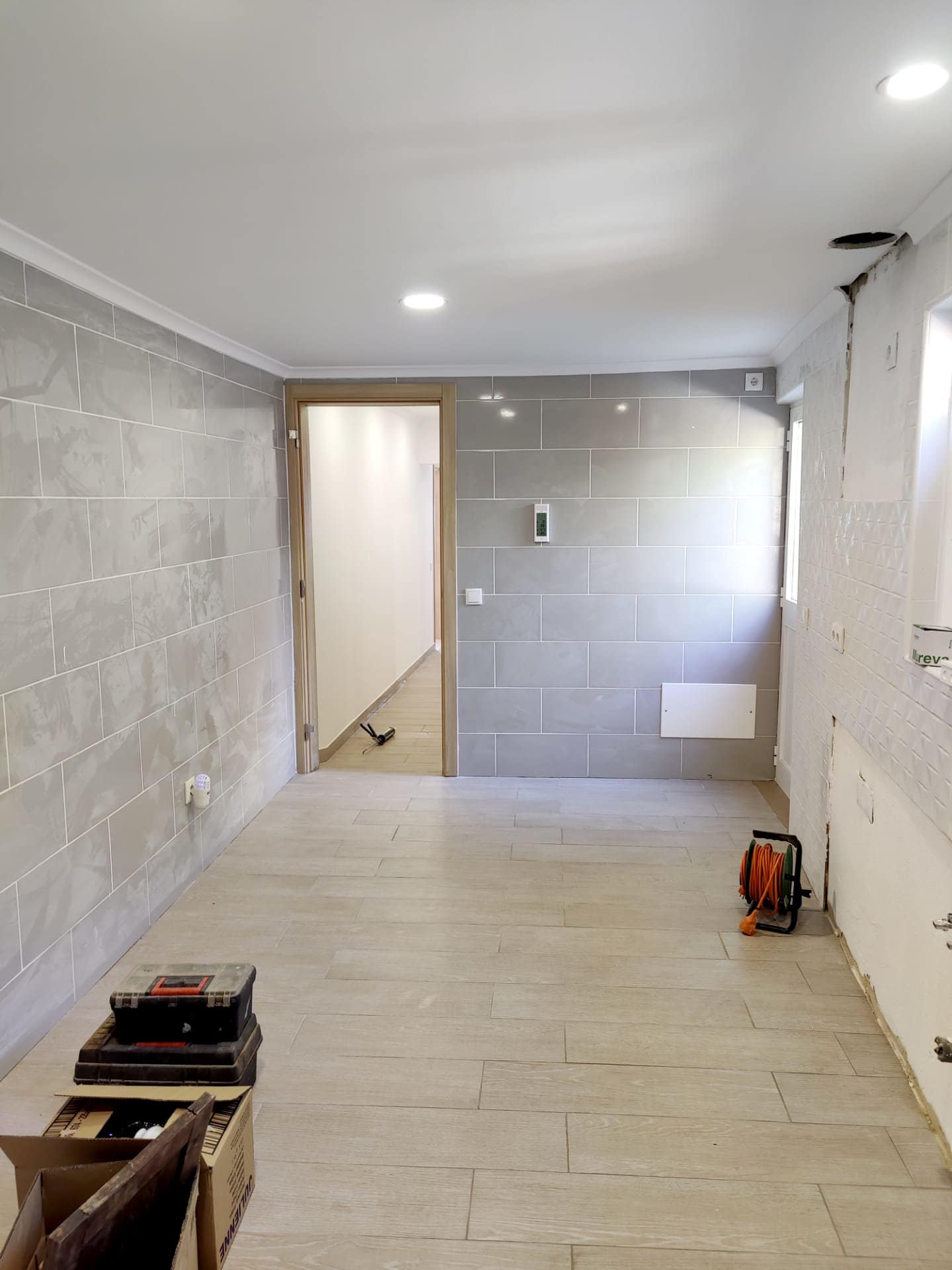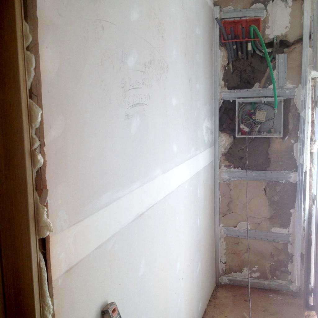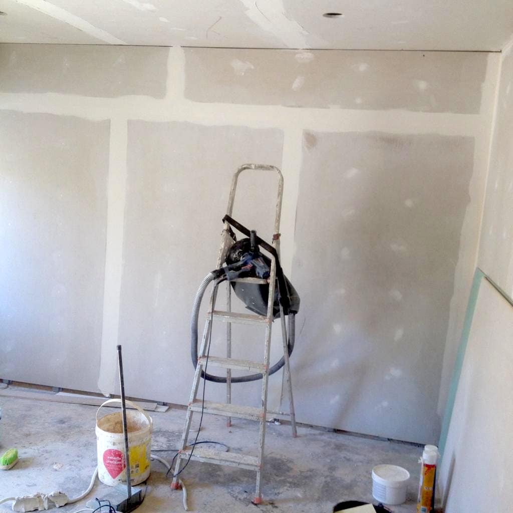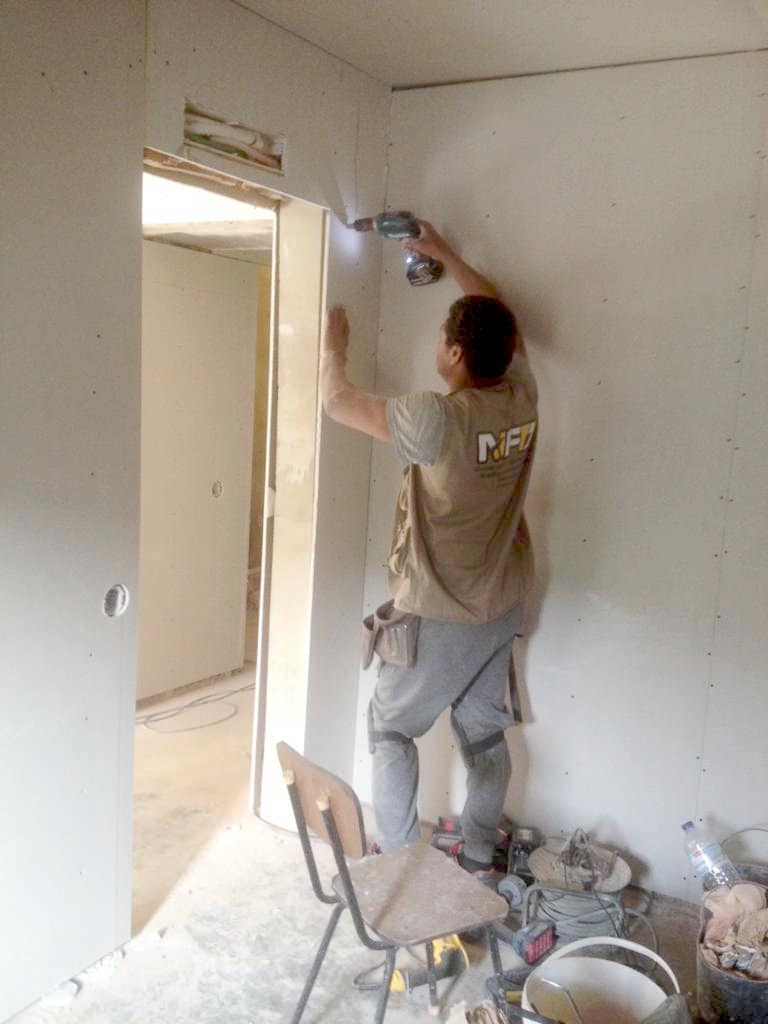 Reabilitação de moradia com criação de novas paredes em dupla placagem de gesso cartonado hidrófugo.