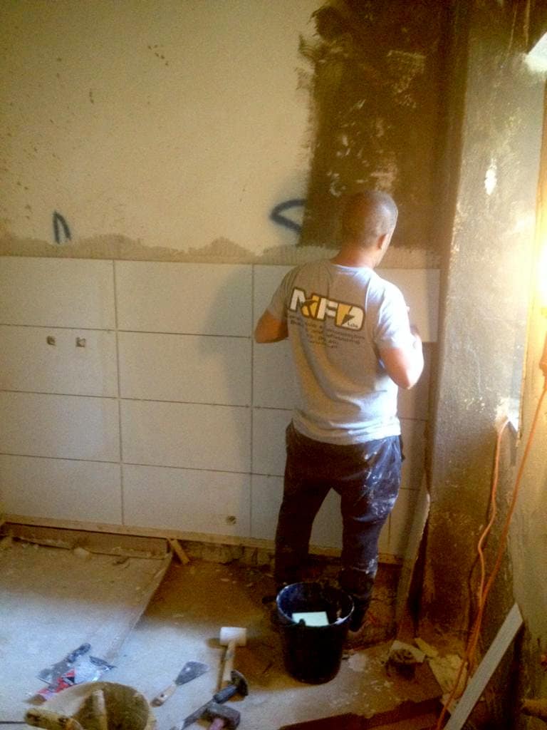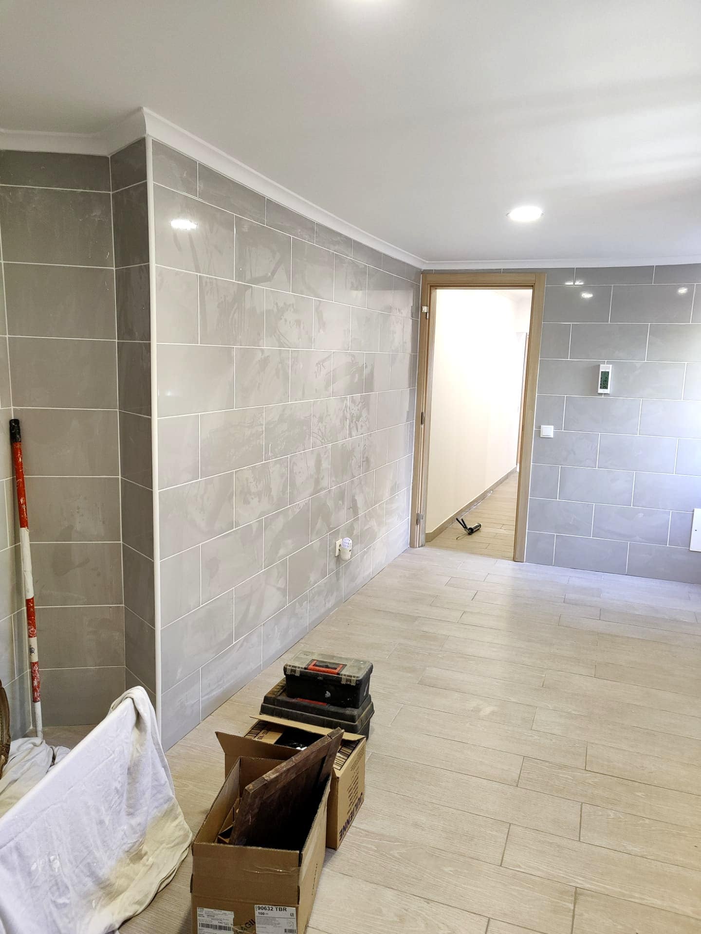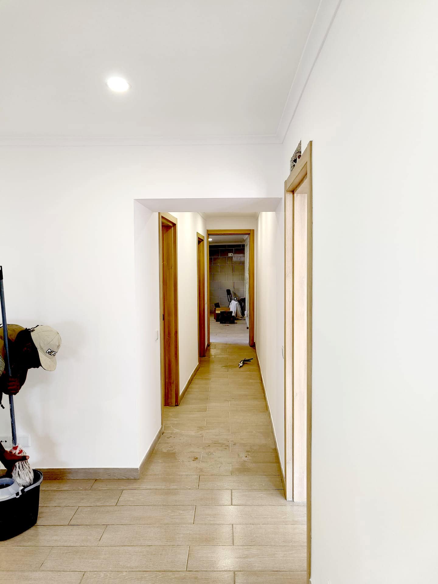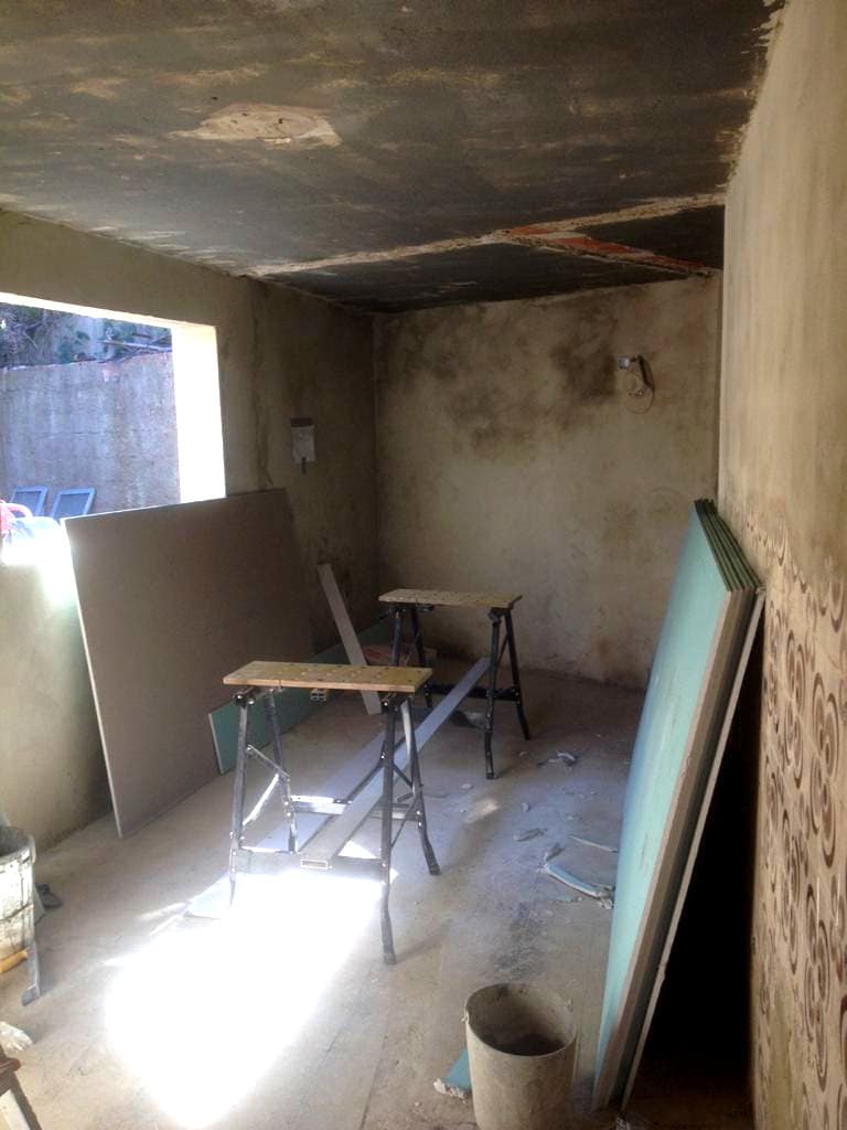 Reabilitação de moradia com criação de novas paredes em dupla placagem de gesso cartonado hidrófugo.